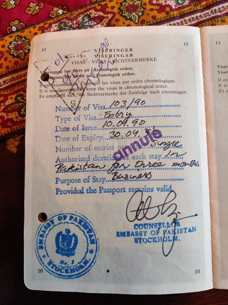 I passet finnes et nytt visum fra noen måneder senere, også det etter en telefon samtale med direktøren. Men, heller ikke denne gang klarte jeg å ordne penger, og måtte be om en ny utsettelse. Dette er også behandlet i boken.
