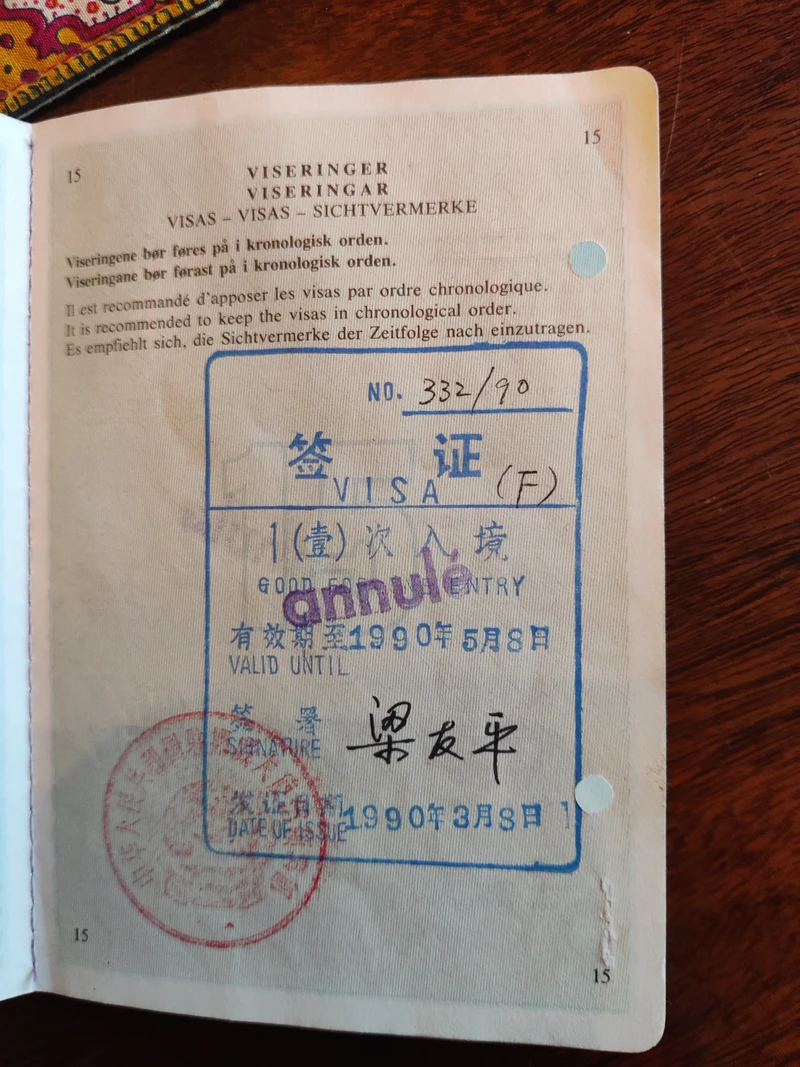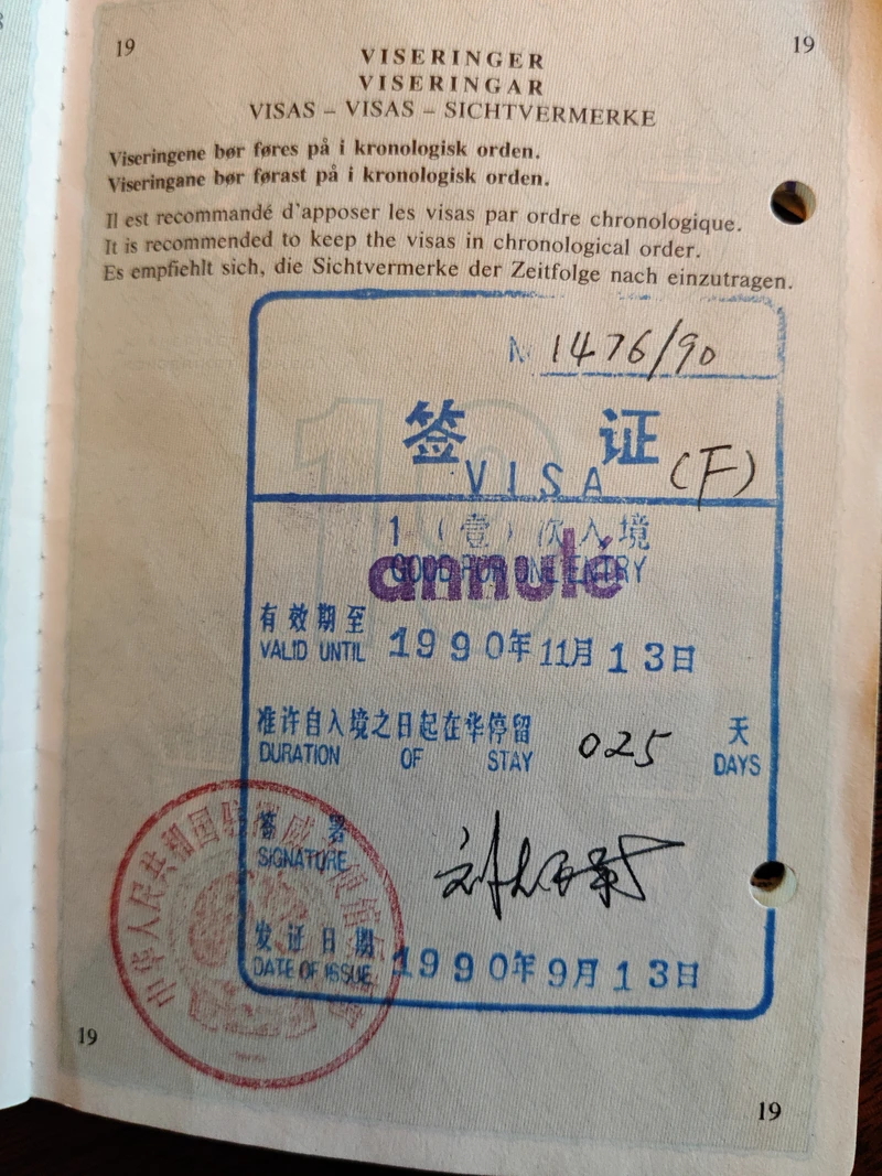 Og bare en uke senere ble jeg innkalt til den kinesiske ambassaden. Visum stemplet som vises på bildet under, var gyldig for hele tre uker. Besøket i et av verdens mest lukkede land ble imidlertid utsatt fordi jeg ikke klarte å betale de omtrent 100 000 kroner i depositum.